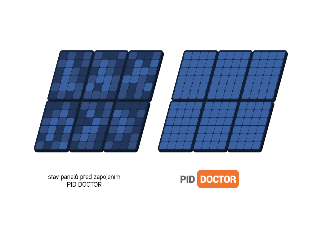 Kvůli PID přicházíte o 5-15 % výkonu z celé produkce elektrárny. U systému s výkonem 1MWp taková ztráta odpovídá minimálně 650 000 Kč ročně. Řešení problému je přitom velmi snadné. Jmenuje se PID Doctor.